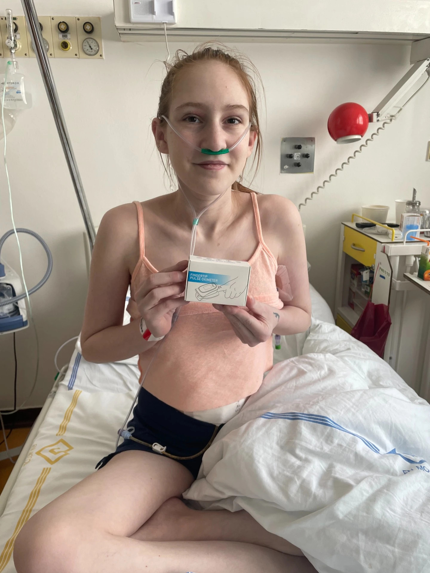 Nikola is a young woman who will soon celebrate her 22nd birthday. She enjoys painting, designing clothes and dresses, and she graduated from a design-oriented secondary school, which she greatly enjoyed. However, she was born with cystic fibrosis. This condition, sometimes referred to as "the salty children's disease," affects the respiratory system, lungs, and pancreas due to impaired ion transport in the human body. The Naše plíce Foundation Fund provided Nikola with an oximeter—a device that measures blood oxygen saturation.