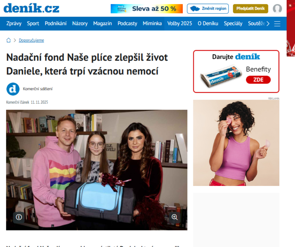 Deník.cz: Nadační fond Naše plíce zlepšil život Daniele, která trpí vzácnou nemocí