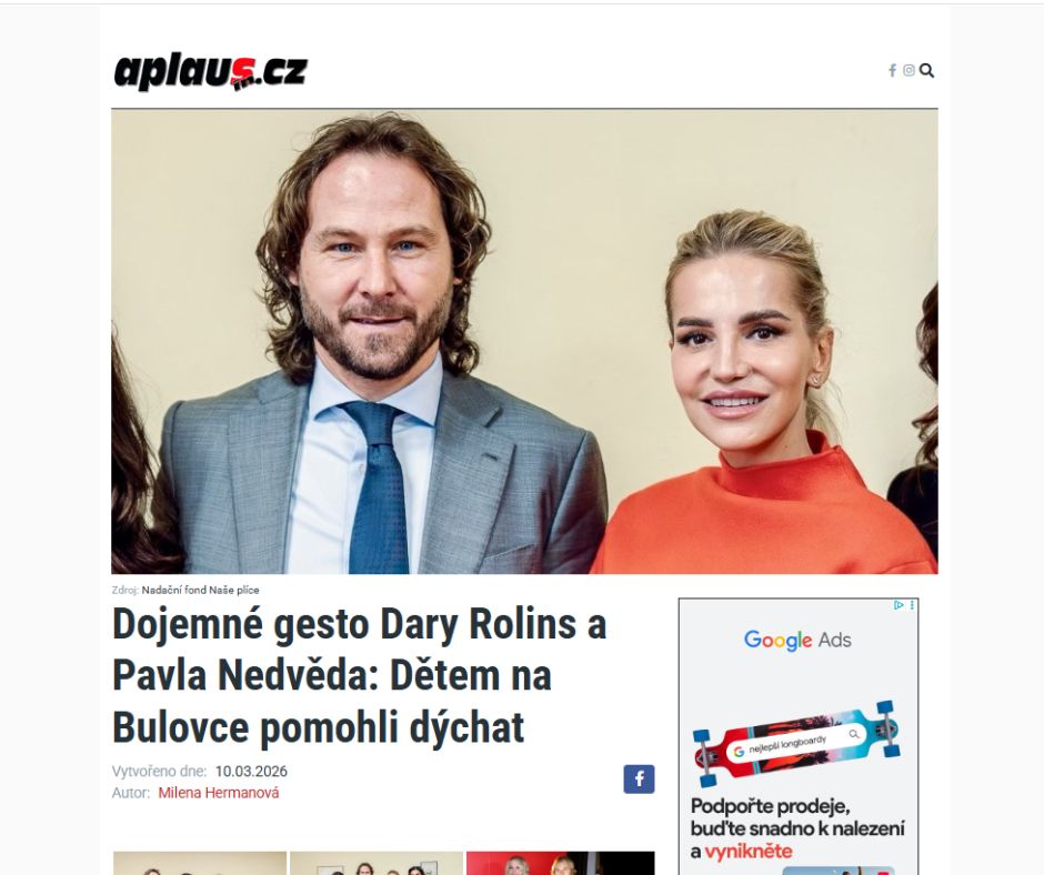 Aplausin.cz: Dojemné gesto Dary Rolins a Pavla Nedvěda: Dětem na Bulovce pomohli dýchat