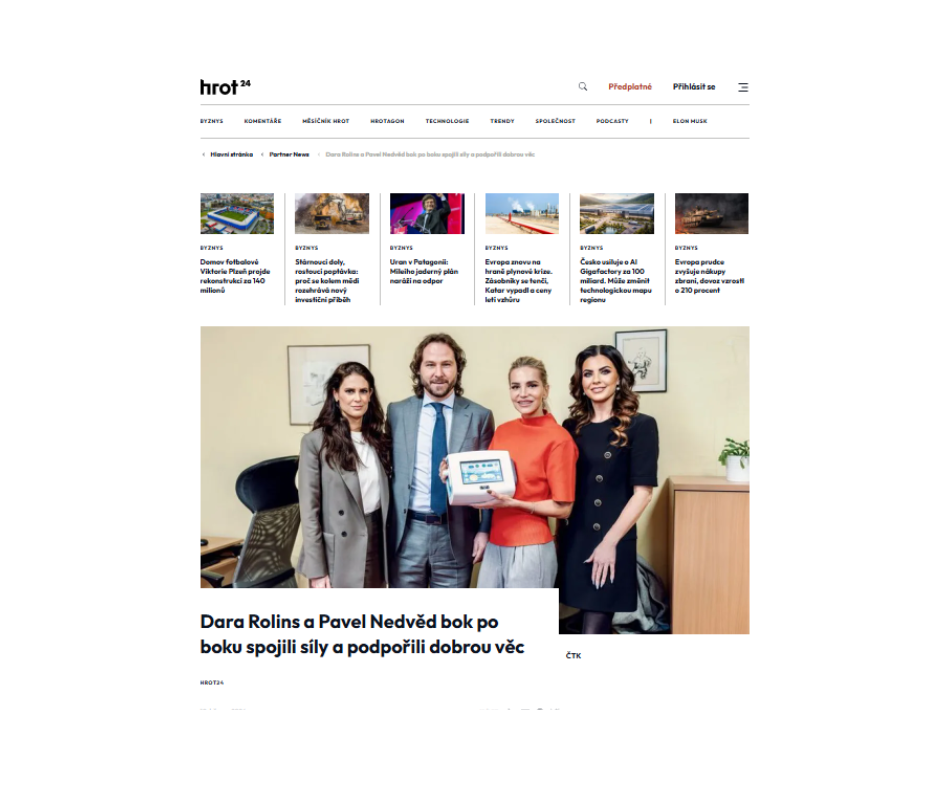 Zpěvačka Dara Rolins a fotbalista Pavel Nedvěd se poprvé rozhodli společně podpořit charitativní akci a rovnou v nemocnici. Na pražské Bulovce předali speciálního kašlacího asistenta pro dětské pacienty. Místo okázalé show přišel silný moment, který spojil slavná jména s pomocí tam, kde jde o dětské zdraví.